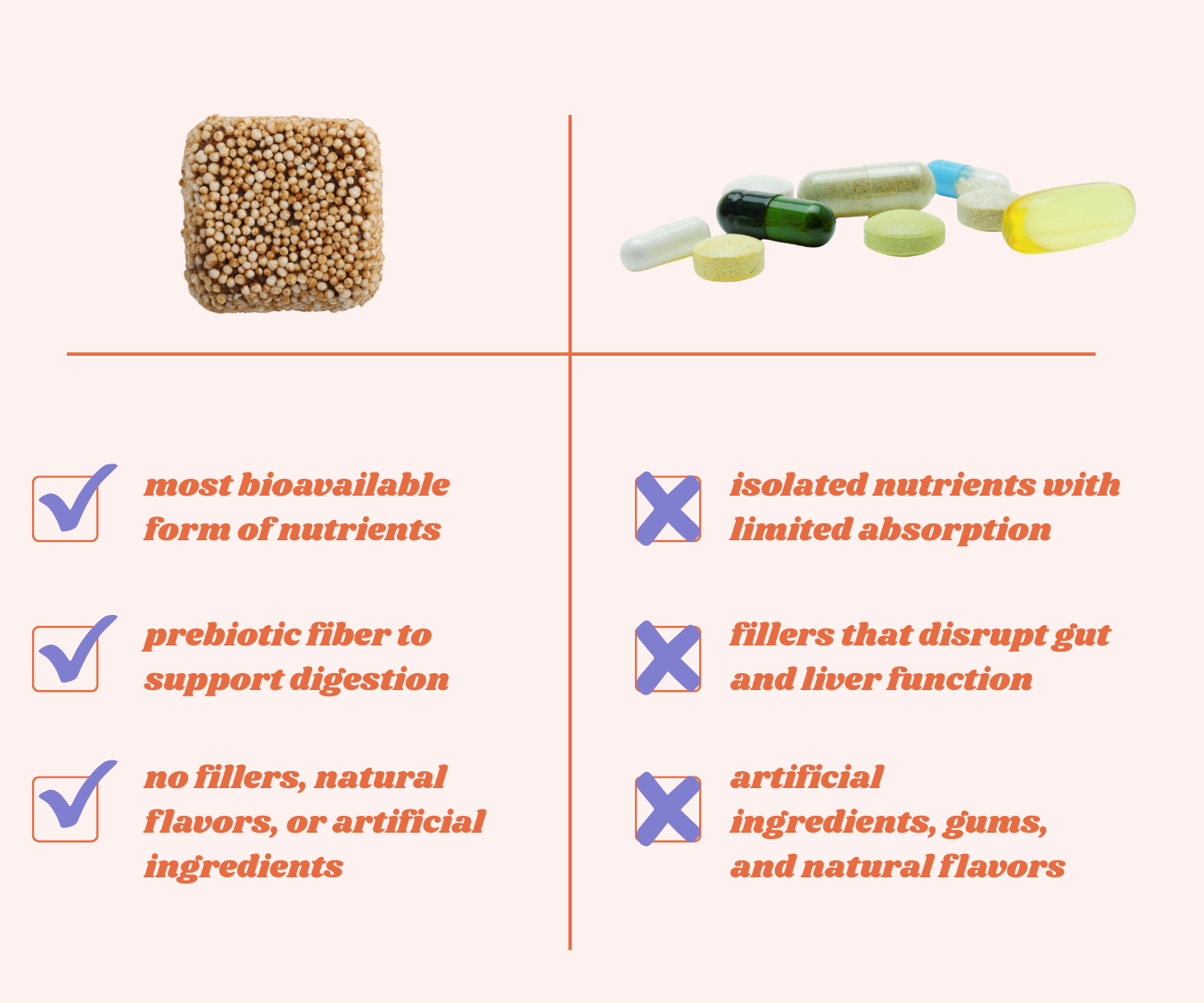 Your body's nutritional demands evolve throughout your menstrual cycle. That's why we've combined 20+ natural ingredients into a delightful cacao-and-ginger daily vitamin bite. This formula, backed by rigorous research and endorsed by dietitians, uses whole foods to promote hormone harmony and elevate mood, ensuring you receive all the vital nutrients your cycle demands. Plus, they're irresistibly tasty!